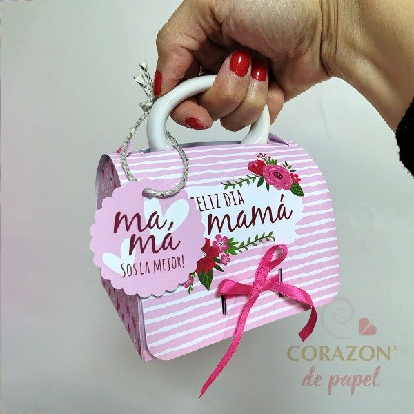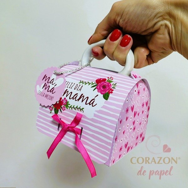 • 1 Diseño de caja tipo "cartera" para taza mug con diseño Dia de la Madre floral.